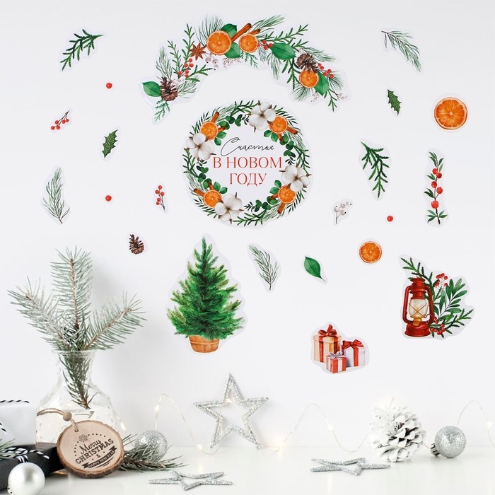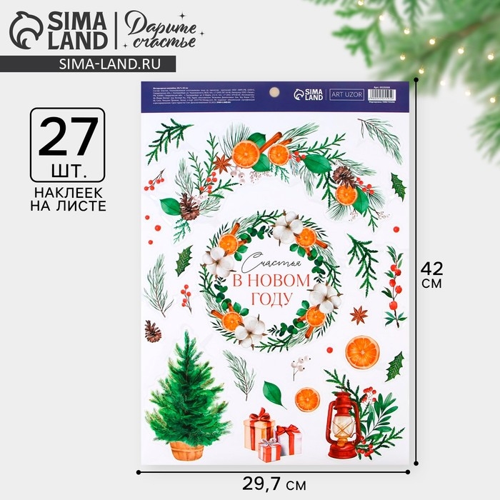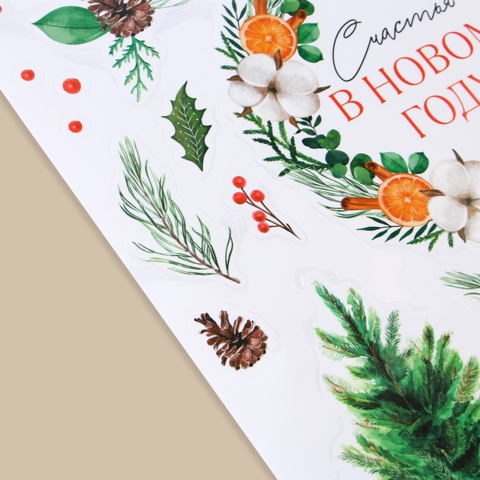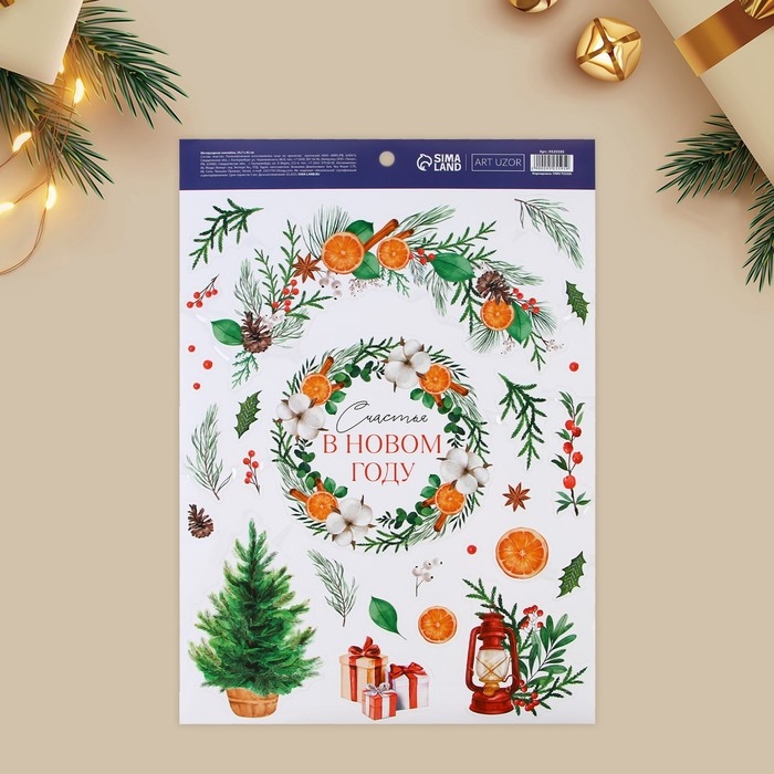 Наклейки новогодние, интерьерные «Счастья в Новом году», 29.7 х 42 см, Новый год