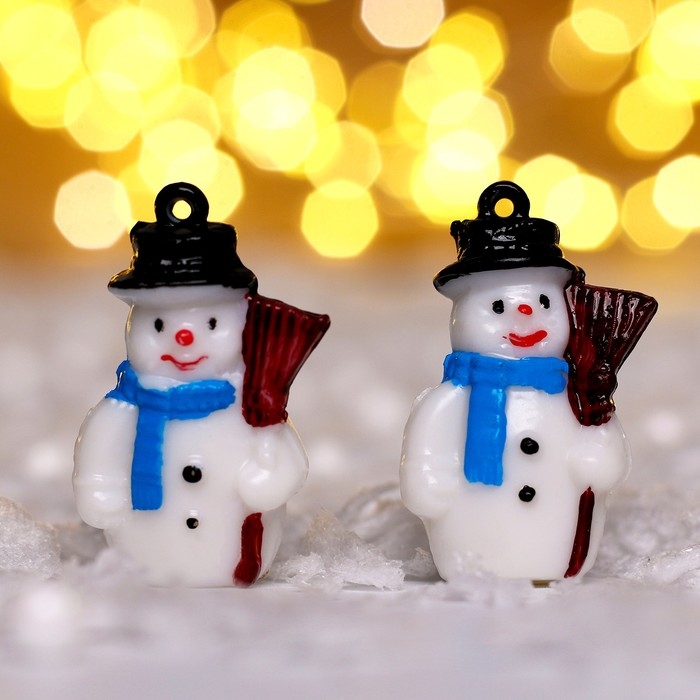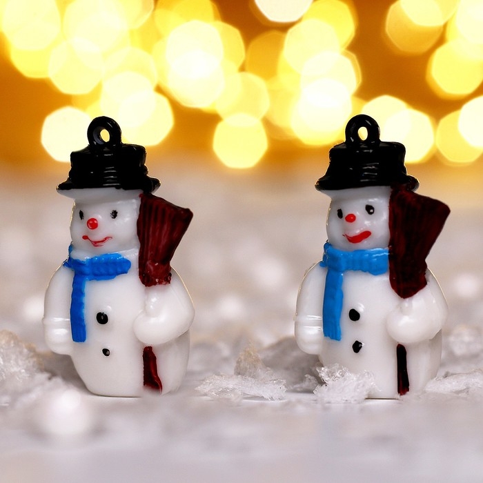 Миниатюра кукольная «Снеговик в чёрной шляпе», набор 2 шт., размер 1 шт. — 3,1 × 2,1 см