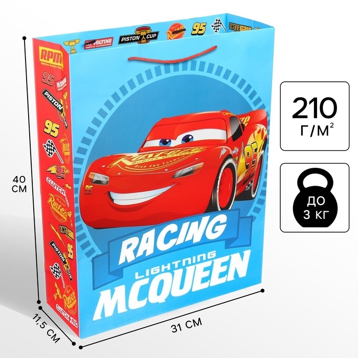 Пакет подарочный, 31х40х11.5 см, упаковка, Тачки