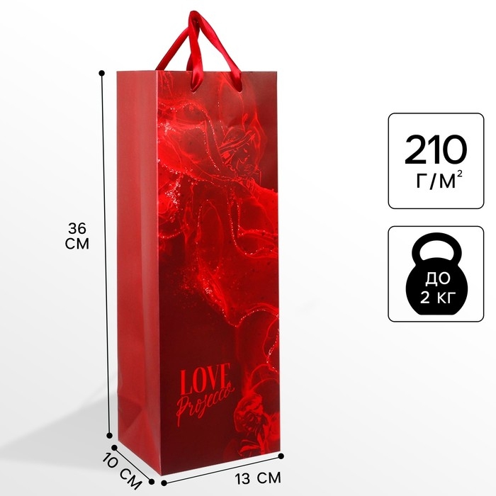 Пакет подарочный под бутылку, упаковка, 36х13х10 см
