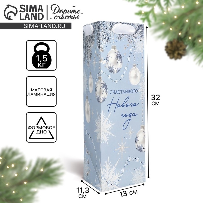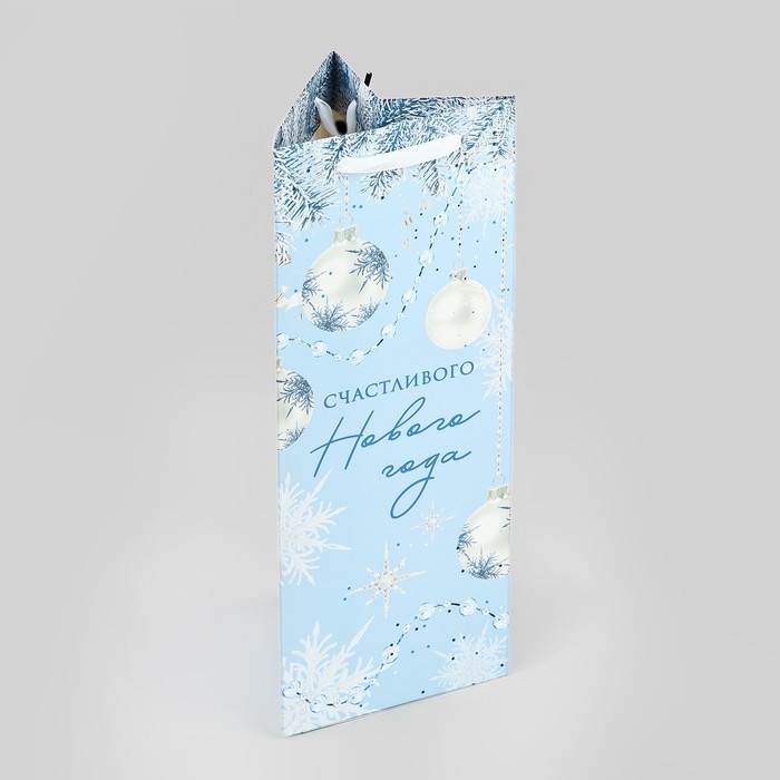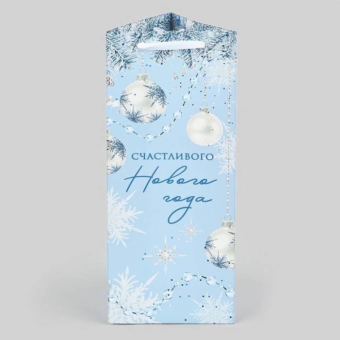 Пакет под бутылку, треугольный «Счастье», 13 х 32 х 11.3 см, Новый год