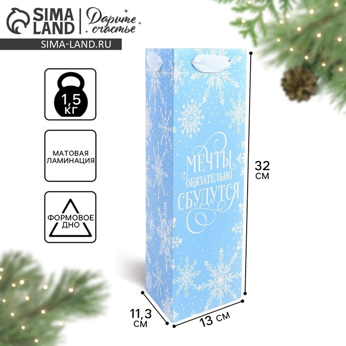 Пакет под бутылку, треугольный «Мечты», 13 х 32 х 11.3 см, Новый год