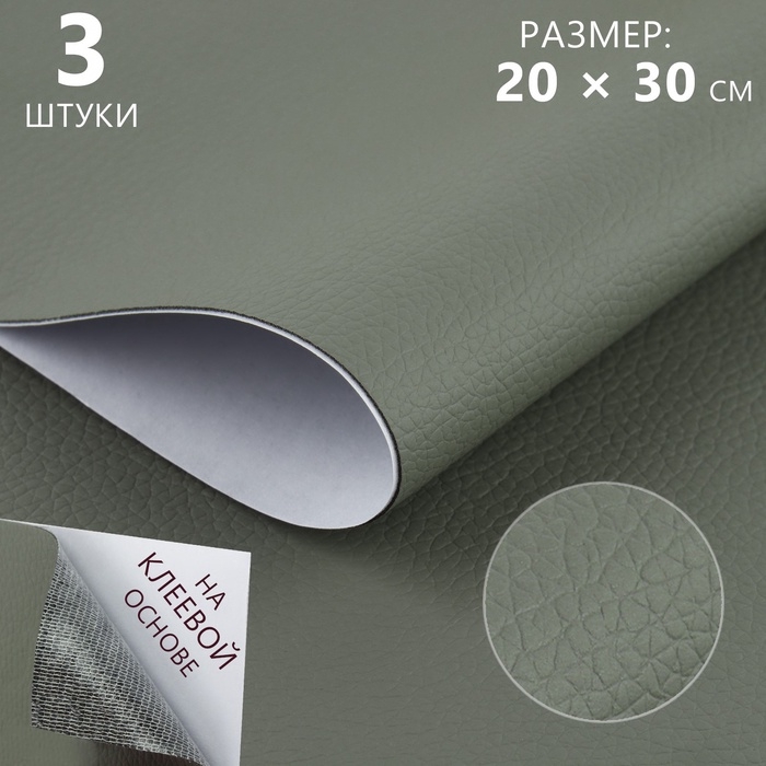 Искусственная кожа, с клеевой основой, 20 × 30 см, 0,5 мм, 3 шт, цвет серый