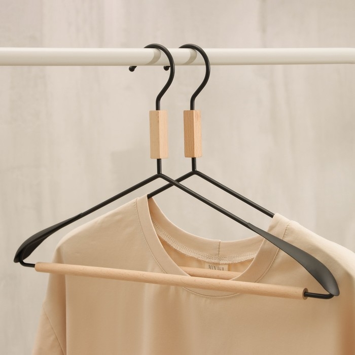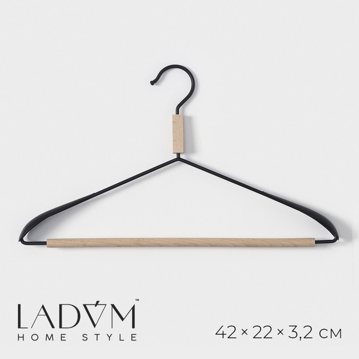 Плечики - вешалка для одежды LaDо́m Laconique, 42×24×3,2 см, широкие плечики, цвет чёрный
