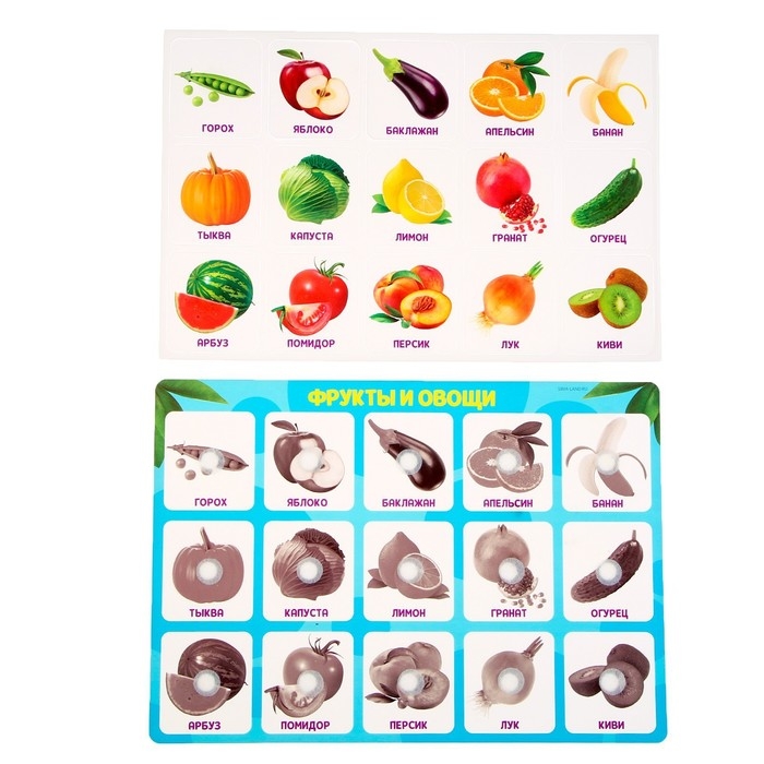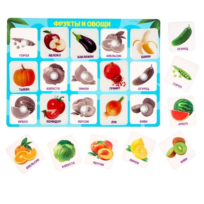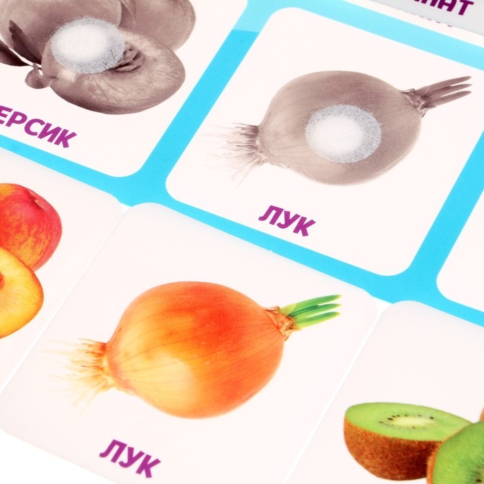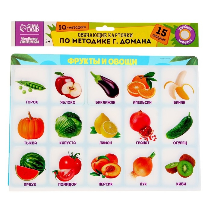 Обучающий набор по методике Г. Домана поможет ребёнку расширить словарный запас и запомнить названия овощей и фруктов.