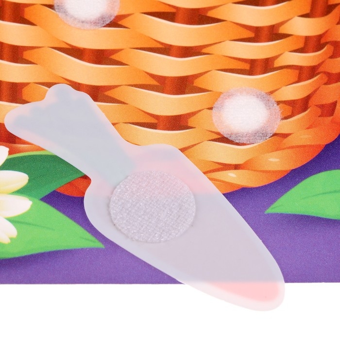 Сортер с липучками состоит из красочной подложки и ярких фигурок.