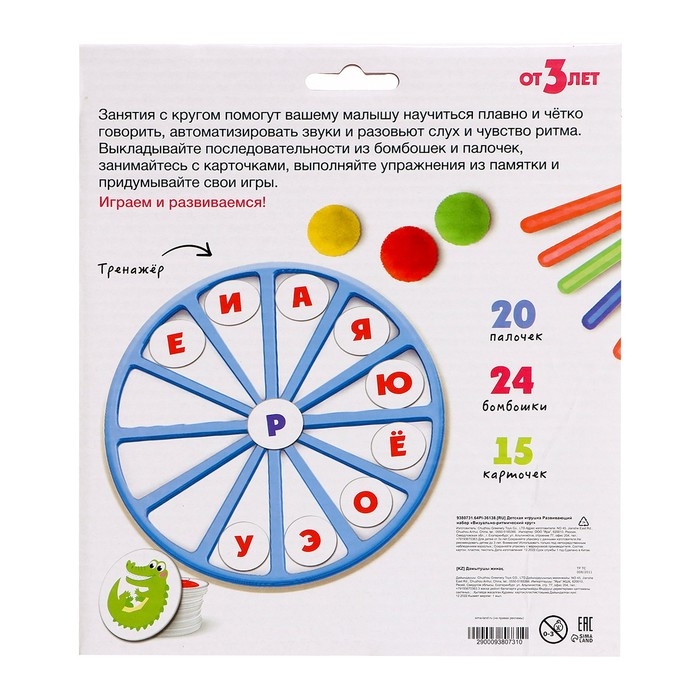 Развивающий набор «Визуально-ритмический круг» поможет малышу научиться плавно и чётко говорить, автоматизировать звуки, развить слух и чувство ритма.