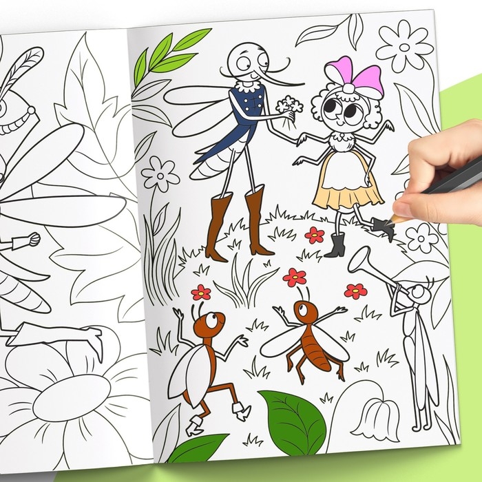 Раскраска создана по мотивам сказок Корнея Ивановича Чуковского. Внутри вы найдёте персонажей из произведений «Ай-болит», «Муха Цокотуха», «Мойдодыр» и другие.
