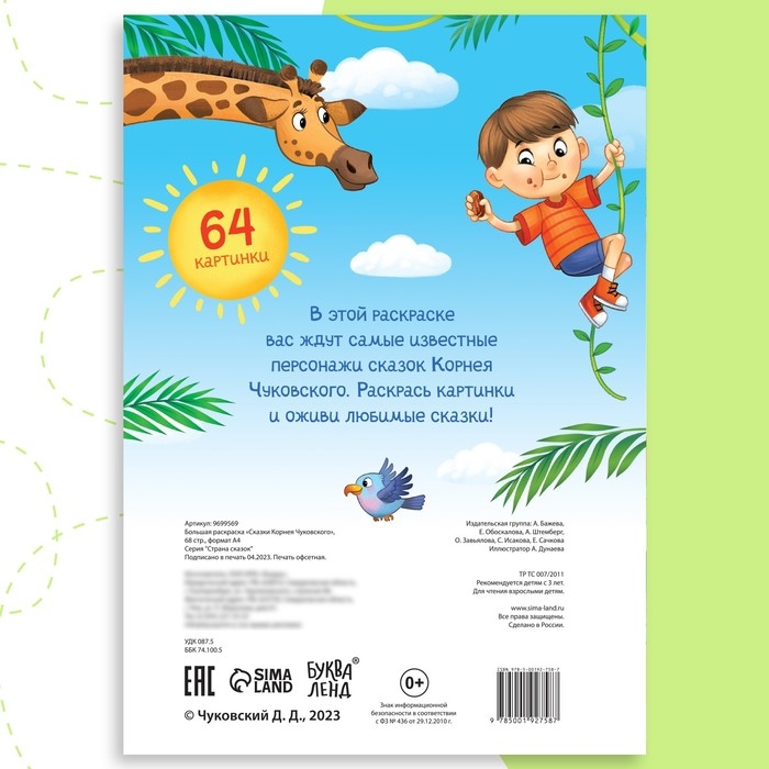 - Внутри вы найдёте 64 картинки с персонажами из сказок Корнея Чуковского.