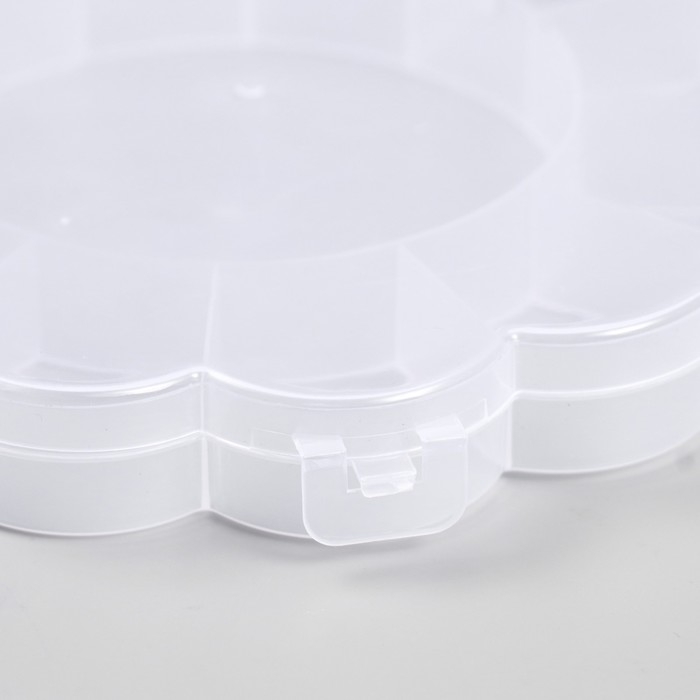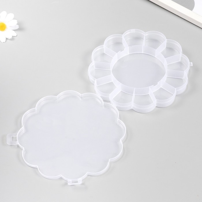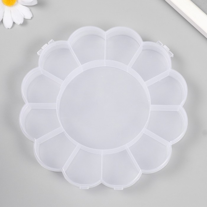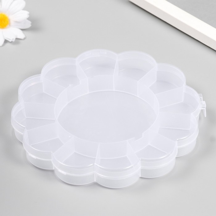Шкатулка пластик для мелочей "Цветок" прозрачная 13 отделений 15,5х15,5х2,5 см
