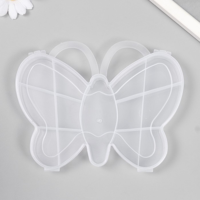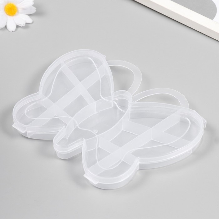 Шкатулка пластик для мелочей "Бабочка" прозрачная 13 отделений 14х18,5х2,5 см