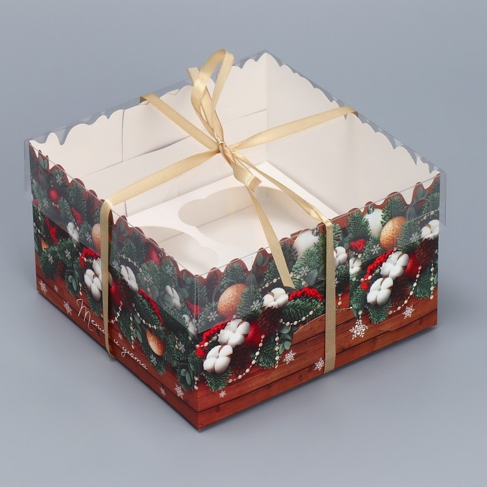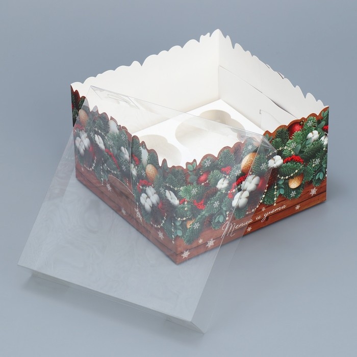 Коробка для капкейка «Тепла и уюта», 16 х 16 х 10 см, Новый год