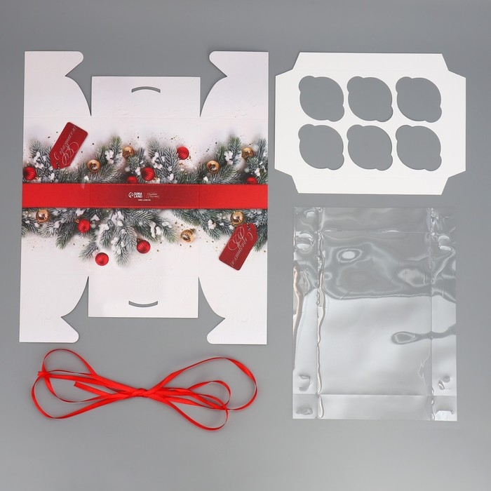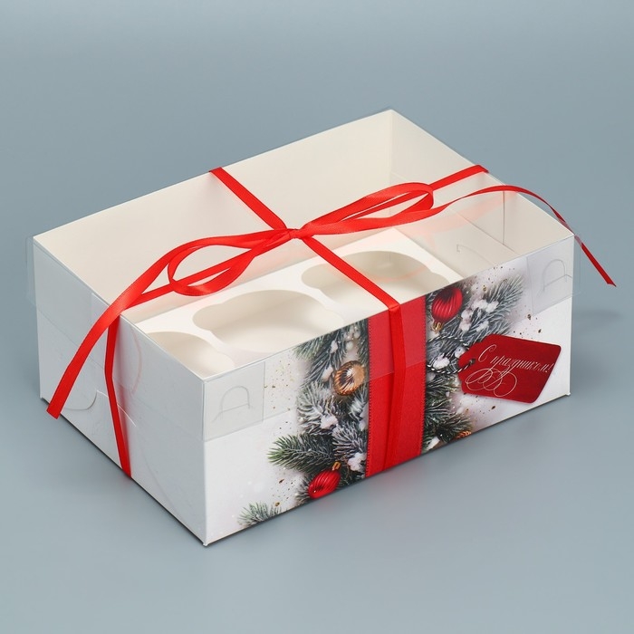 Коробка для капкейка «С праздником!», 23 х 16 х 10 см, Новый год