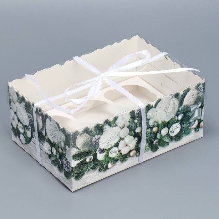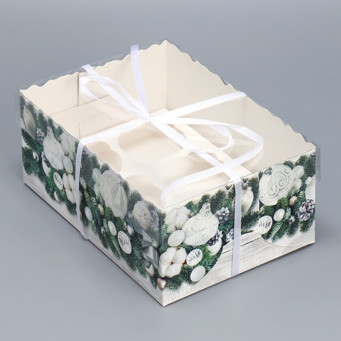 Коробка для капкейка «Снежные игрушки», 23 х 16 х 10 см, Новый год
