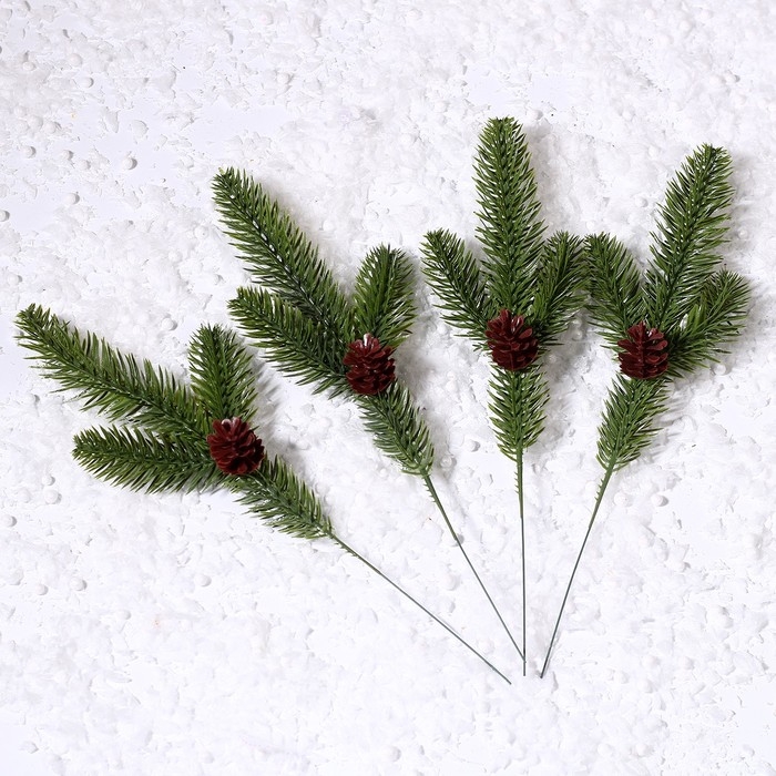 Декор «Веточка ели с шишкой», набор 4 шт., размер 1 шт. — 28 см