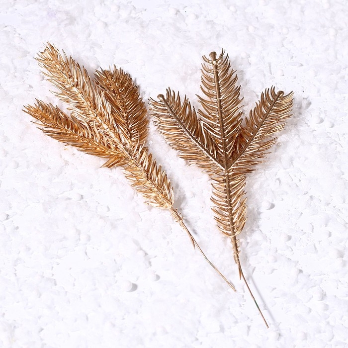 Декор «Веточка ели золотистая», набор 2 шт., размер 1 шт. — 25 × 10 см