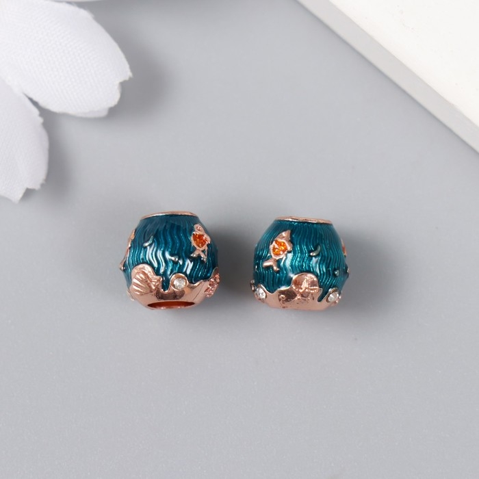 Бусина для творчества металл "Рыбка в море" золото, эмаль, стразы 0,9х1 см
