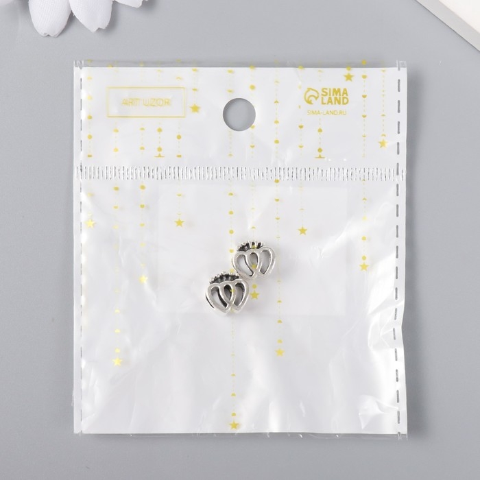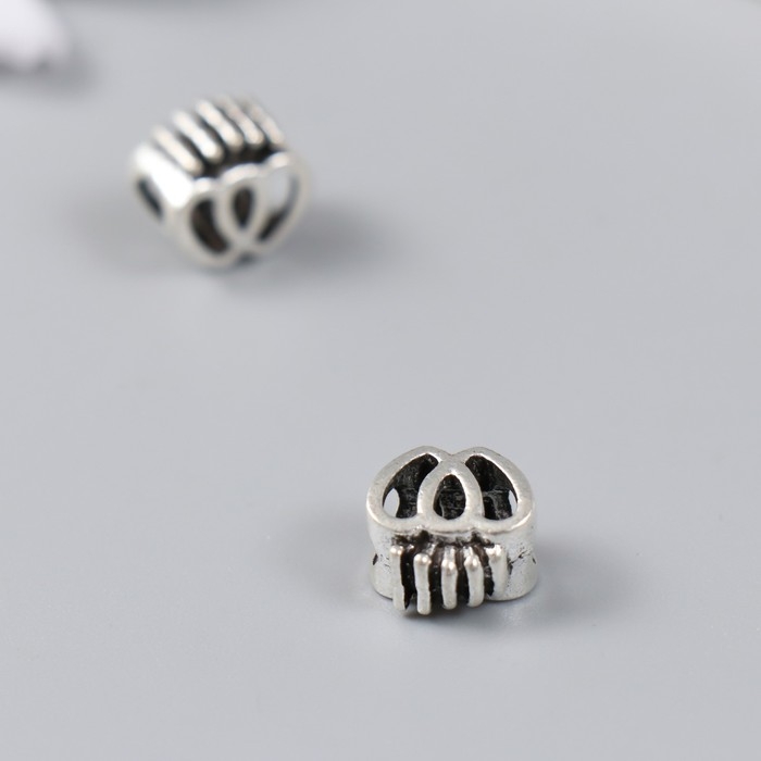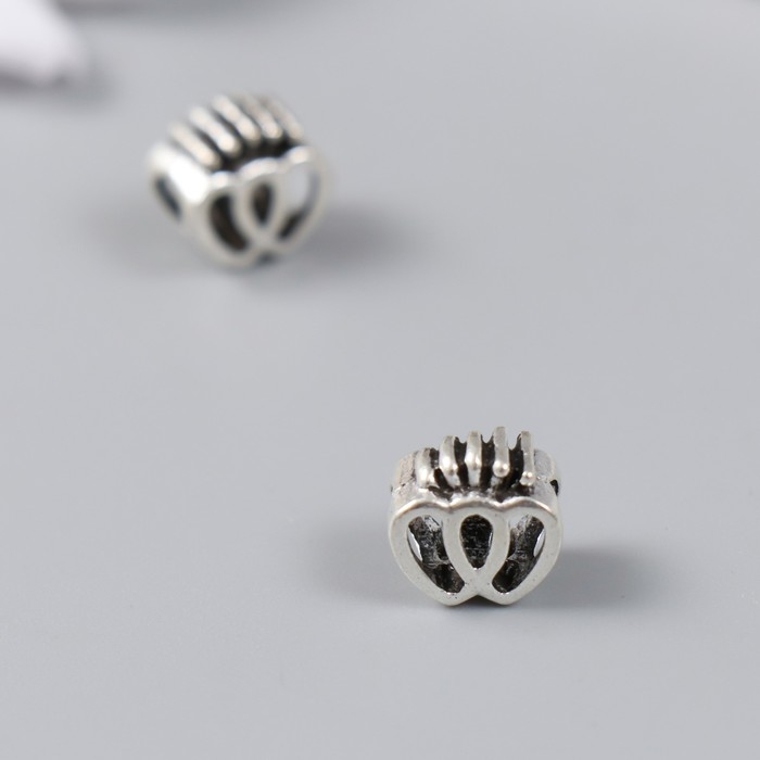 Бусина для творчества металл "Два сердца с короной" серебро 1х1 см