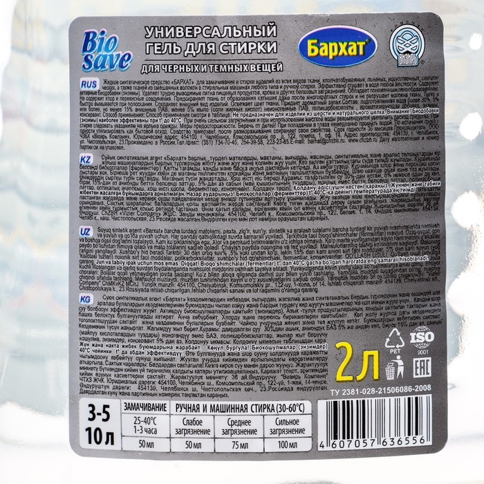 Гель для стирки BIOSAVE Бархат для темных вещей, 2 л