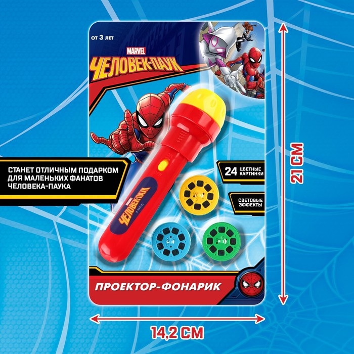 Проектор-фонарик «Человек паук», MARVEL, свет, цвет МИКС