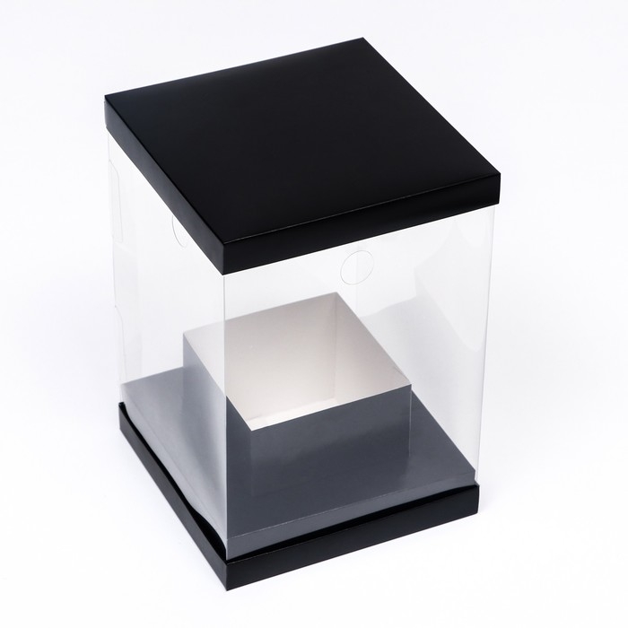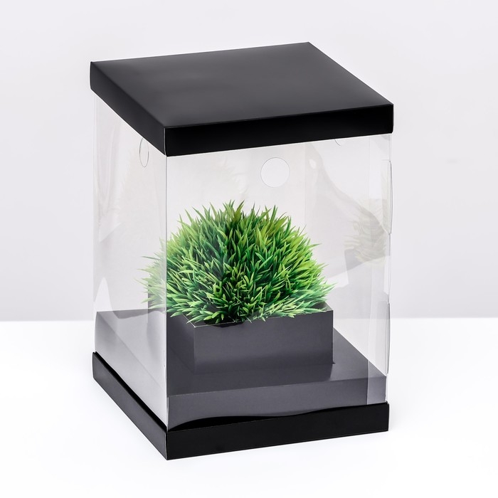 Коробка для цветов с вазой и PVC окнами, складная, 16 х 23 х 16 см, чёрный