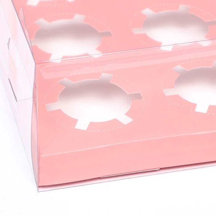 Коробка для 12 капкейков, розовый 34.7 × 26.3 × 10 см