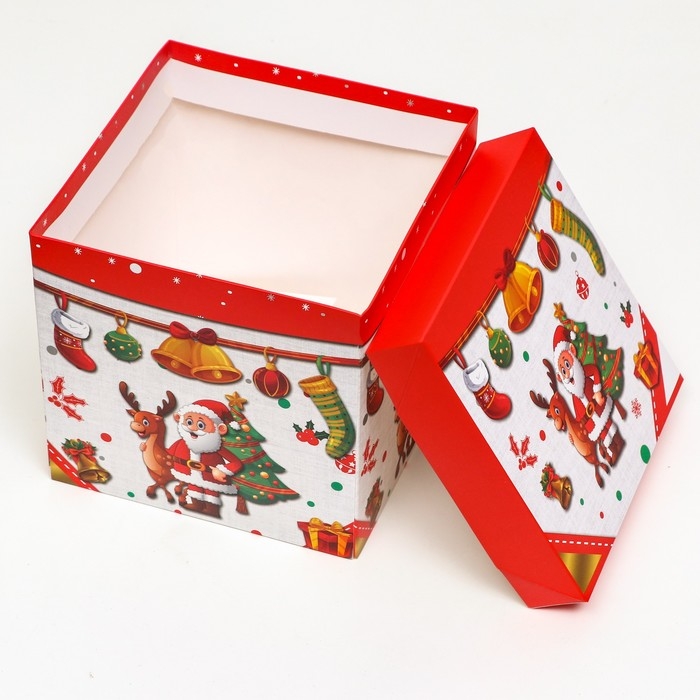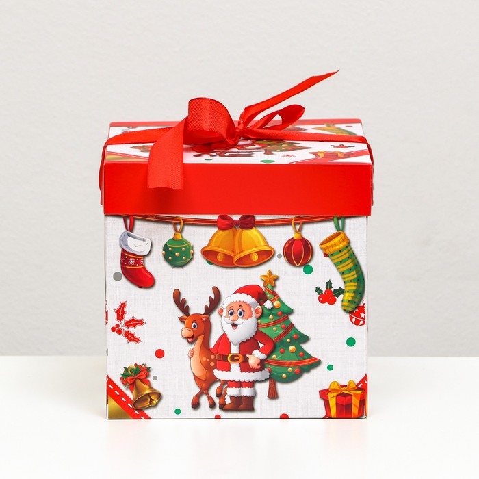 Новый год. Коробка Самосборная «Дед мороз и Ёлка» 15 х 15 х 15 см