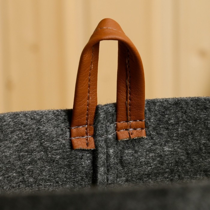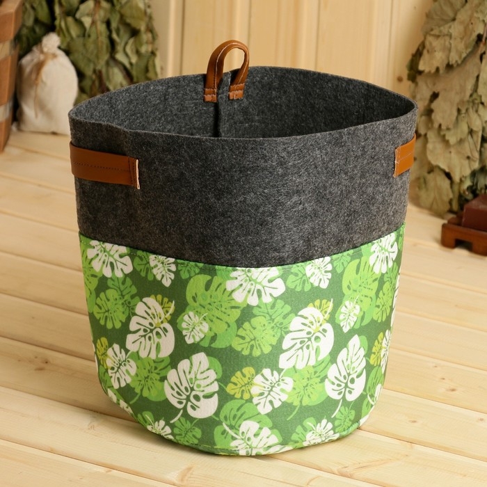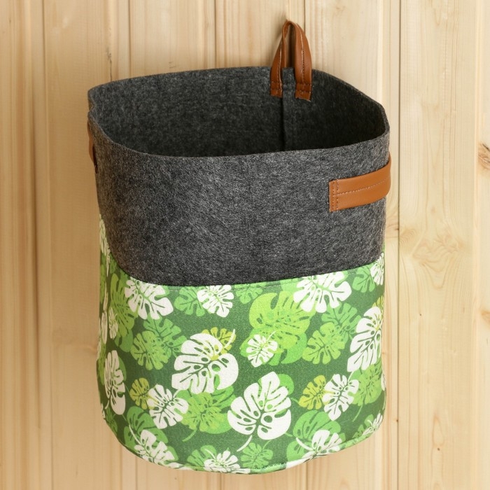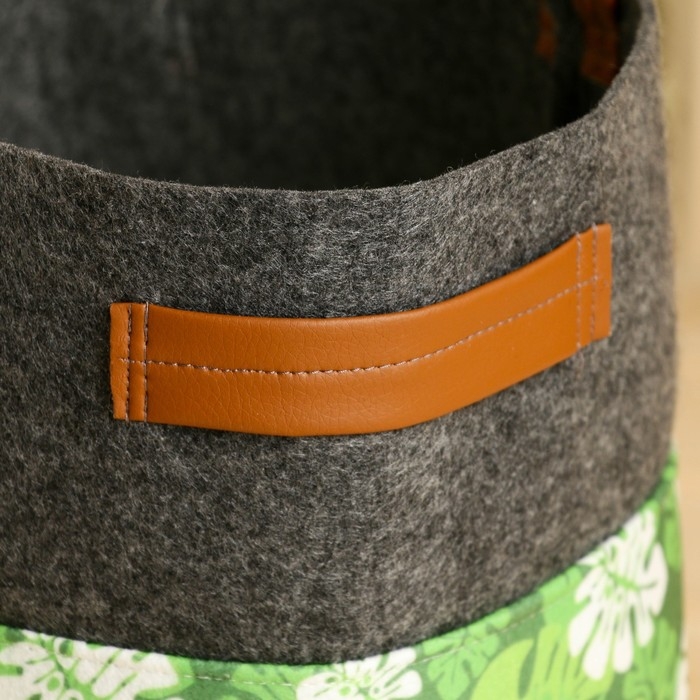 Органайзер для хранения с боковыми ручками, принт зеленые листья, серый, 28х28х26 см