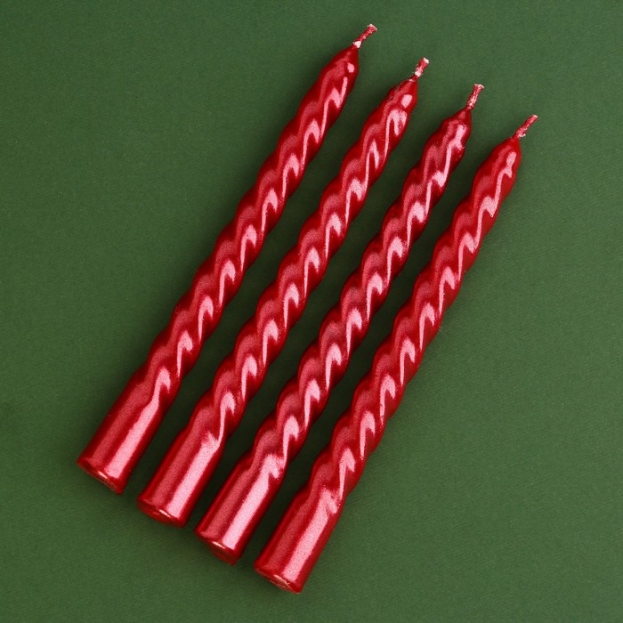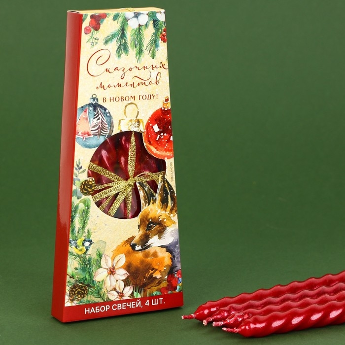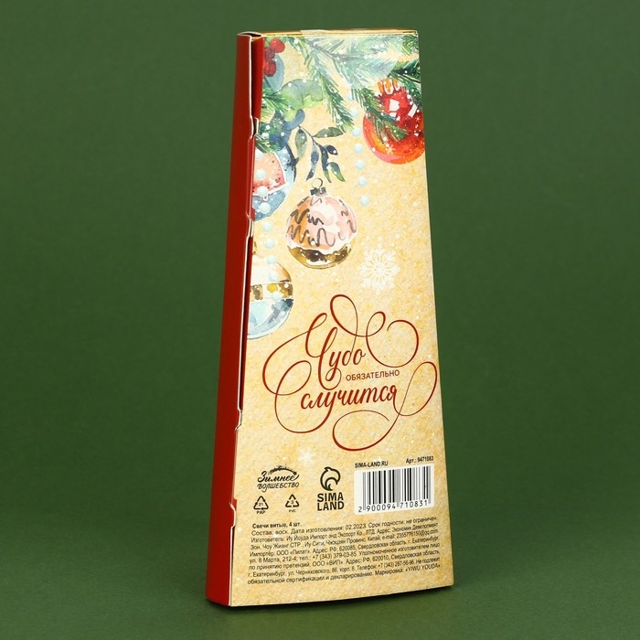 Набор новогодних восковых свечей «Новый год: Верь в чудеса», 4 шт., красные, 15 х 1 х 1 см.