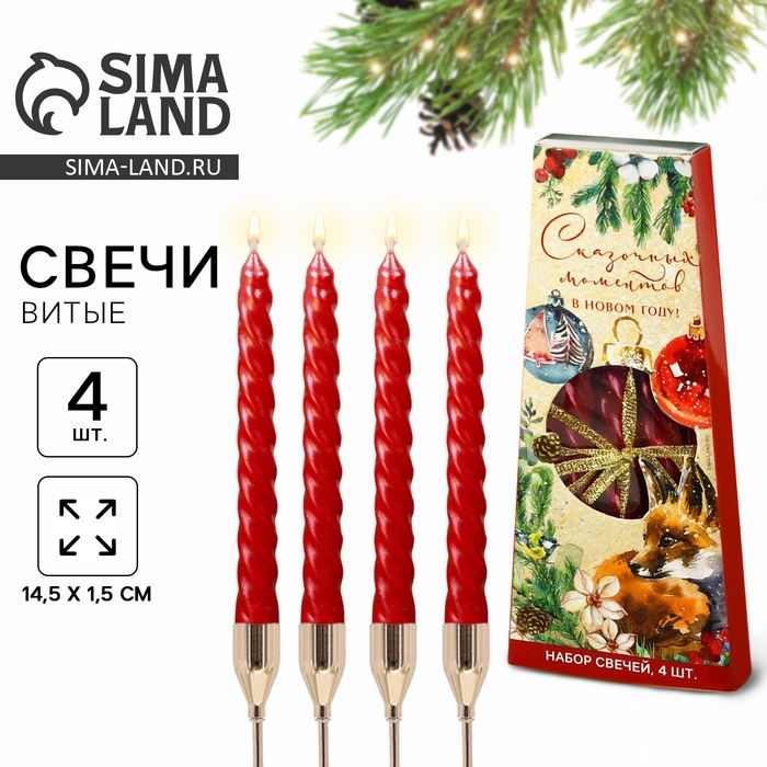 Новогодние свечи витые «Новый год: Сказочных моментов», без аромата, набор 4 шт, высота 15 см