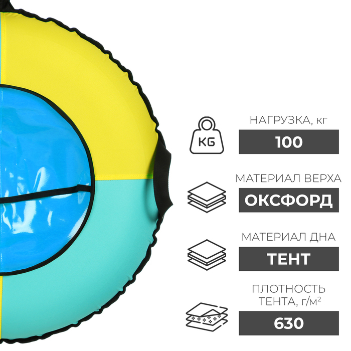 Дно тюбинга изготовлено из тентовой ткани 630 г/м², что гарантирует долгий срок службы и обеспечивает отличное скольжение.
