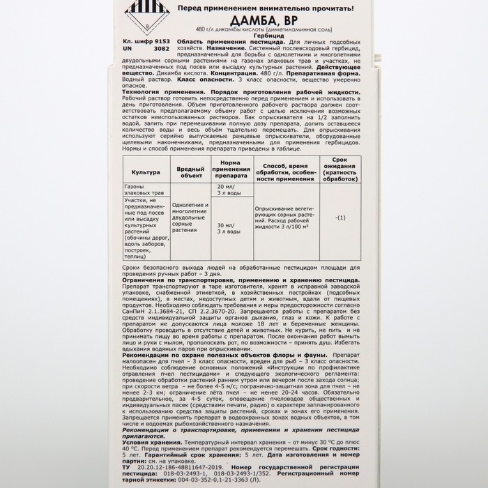 Обладает выраженным синергизмом с препаратами на основе 2,4-Д, МЦПА, сульфонилмочевин, триазинов, глифосатов