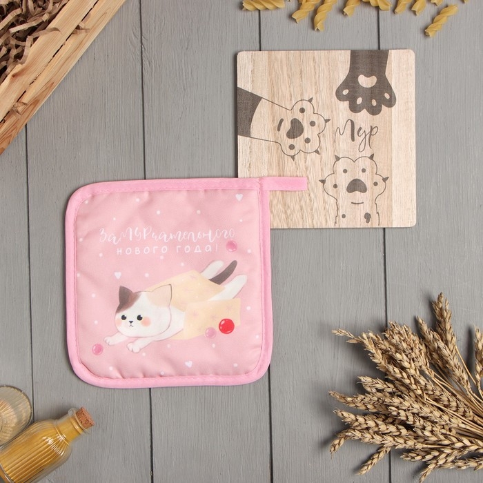Новый год. Набор кухонный Доляна Мур: подставка 15*15 см, прихватка 17*17см