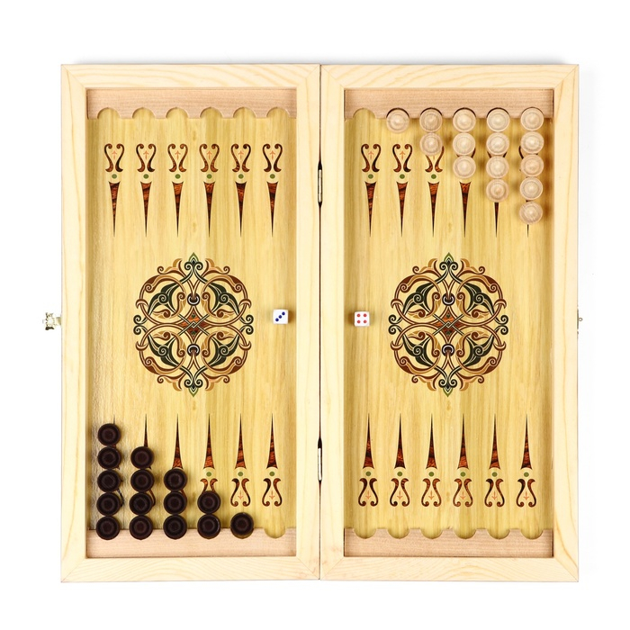 Нарды деревянные большие, настольная игра "Лев", 40 х 40 см, с шашками