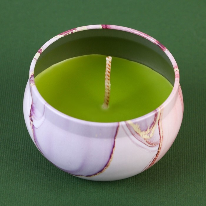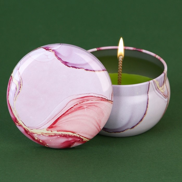Новогодняя ароматическая свеча в банке «Новый год: Розовый мрамор», аромат карамель, 6 х 6 х 4 см.