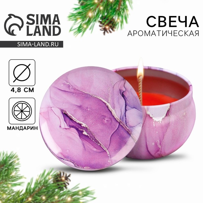 Новогодняя ароматическая свеча в банке «Новый год: Голубой мрамор», аромат еловые шишки, 6 х 6 х 4 см.