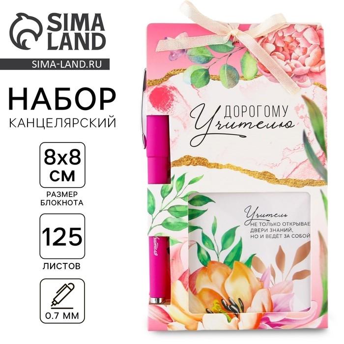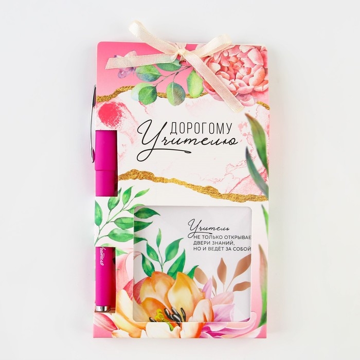 Подарочный набор «Дорогому учителю», блокнот 125 листов, ручка пластик, синяя паста 0.7 мм