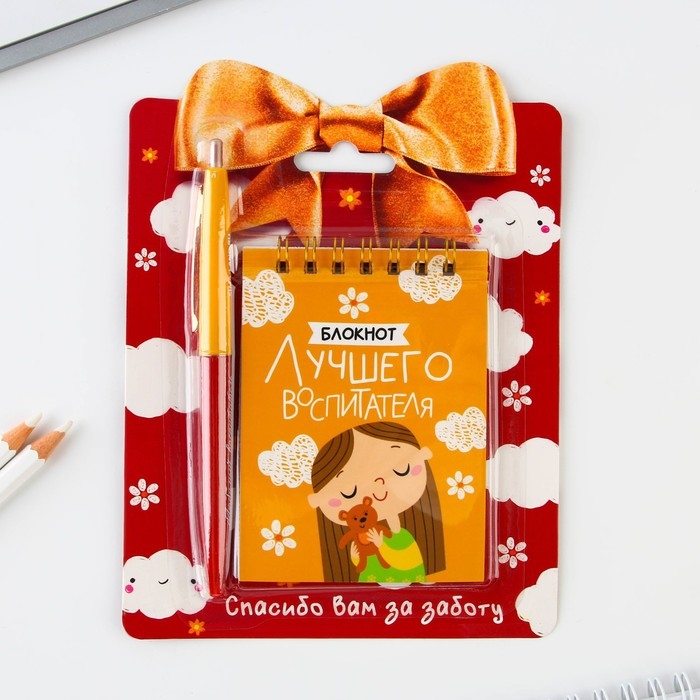 Подарочный набор блокнот «Лучшему воспитателю» формат А7, 32 листа, ручка пластик,синяя паста