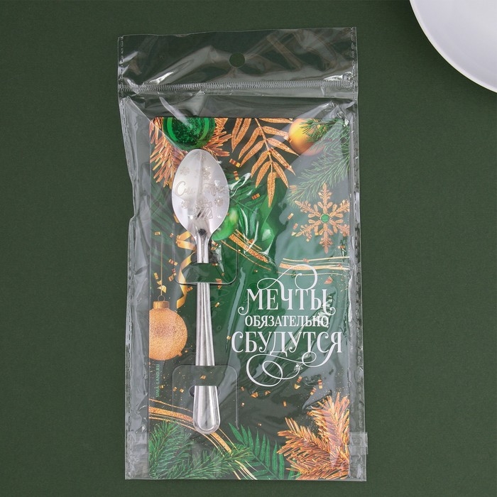 Ложка столовая с гравировкой «Мечты сбудутся», 2,8 х 14 см — чудесный подарок, способный сделать грядущий год таким, каким вы пожелаете. А современный новогодний дизайн открытки и тёплые слова никого не оставят равнодушным, и ваш подарок запомнится надолго!