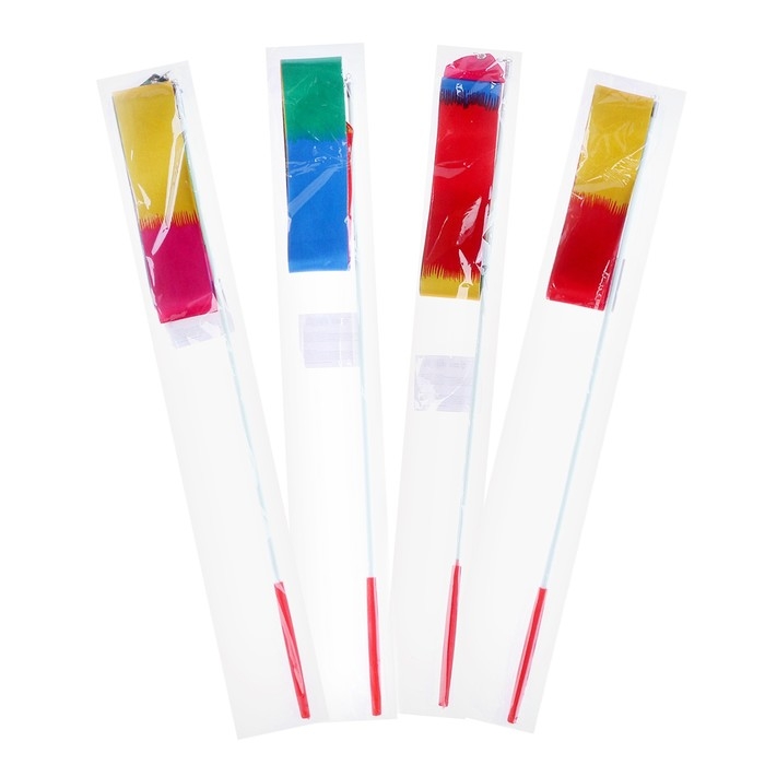 Лента предназначена для занятий художественной гимнастикой и танцами. Она выполнена в ярких многоцветных тонах, что делает её заметной и эффектной в движении. Этот аксессуар подходит как для начинающих, так и для опытных спортсменов, позволяя выполнять различные элементы с плавными и красивыми линиями.