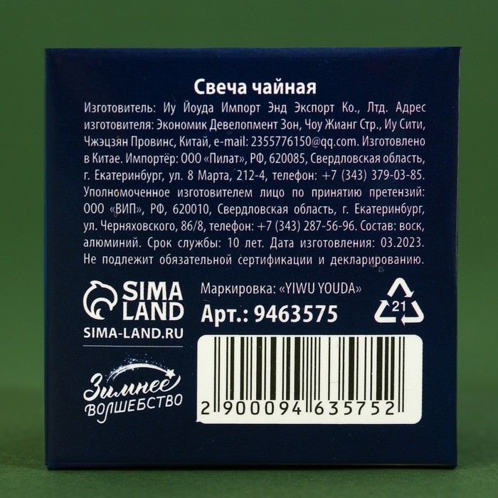 Свеча новогодняя чайная «Новый год: Праздничная», без аромата, d = 4 см
