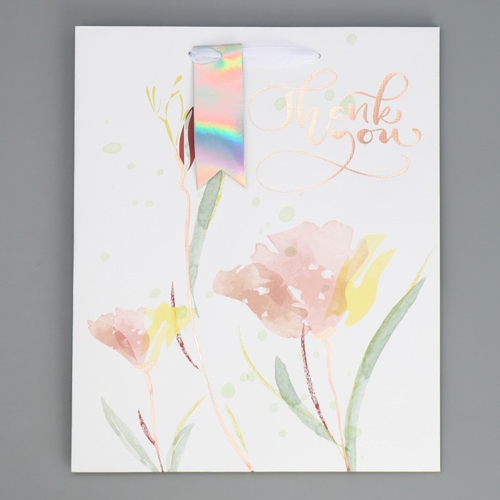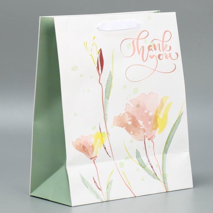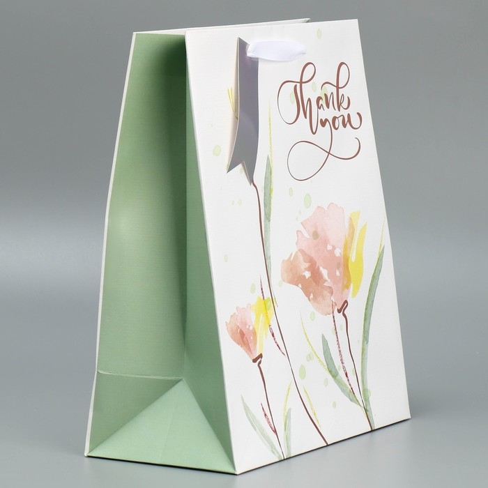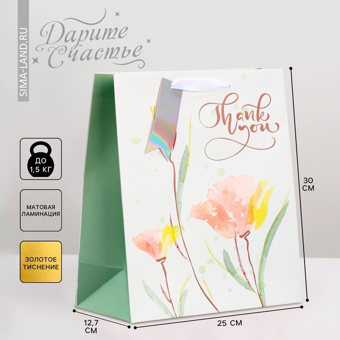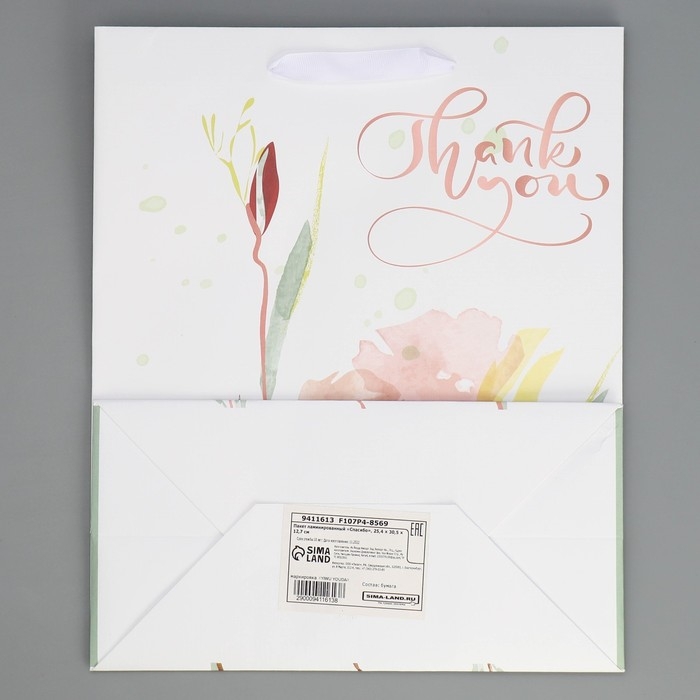 Пакет подарочный ламинированный, упаковка, «Спасибо», 25.4 х 30.5 х 12.7 см