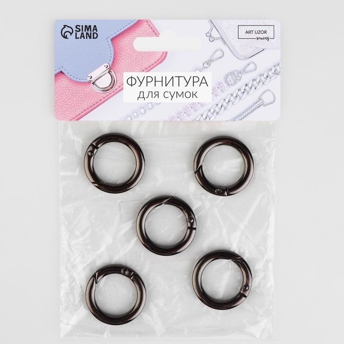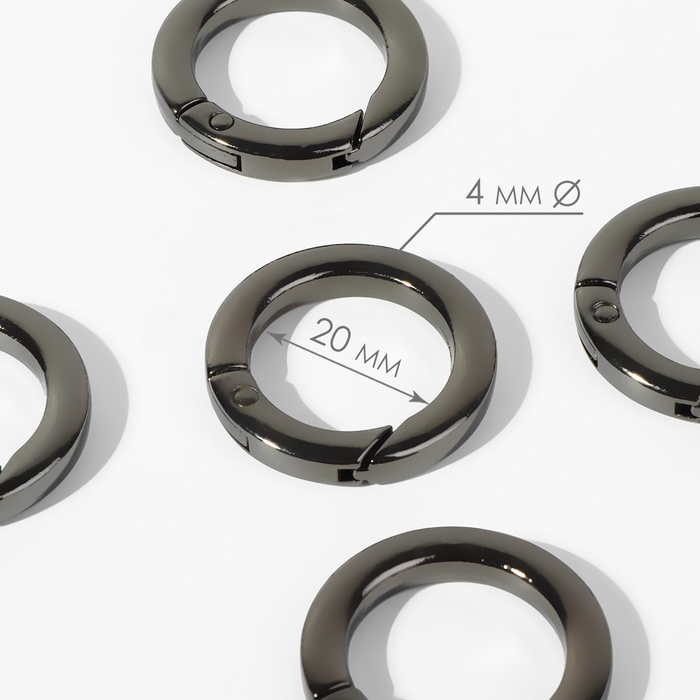 Кольцо-карабин плоский, d = 20/28 мм, толщина - 4 мм, 5 шт, цвет чёрный никель