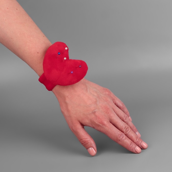 Игольница на браслете «Сердце», 23 × 6 см, цвет красный