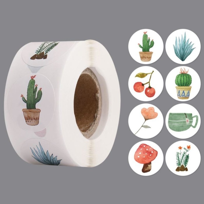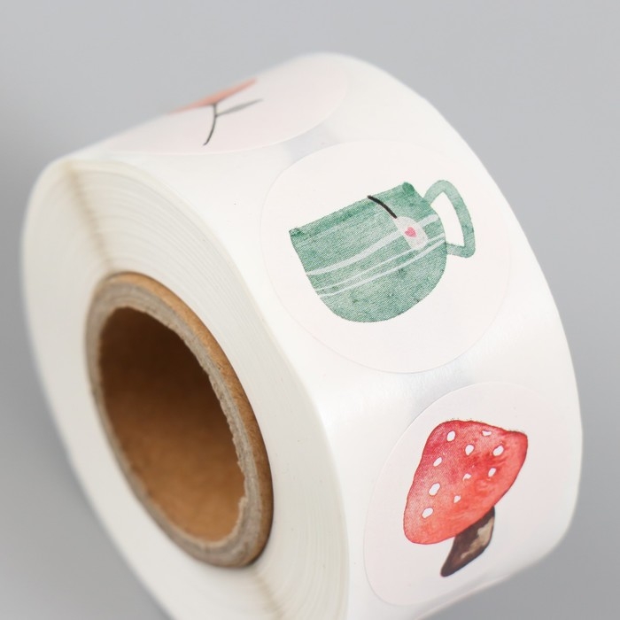 Наклейка бумага "Акварельные рисунки" d=2,5 см 500 шт в рулоне 3х6,5х6,5 см