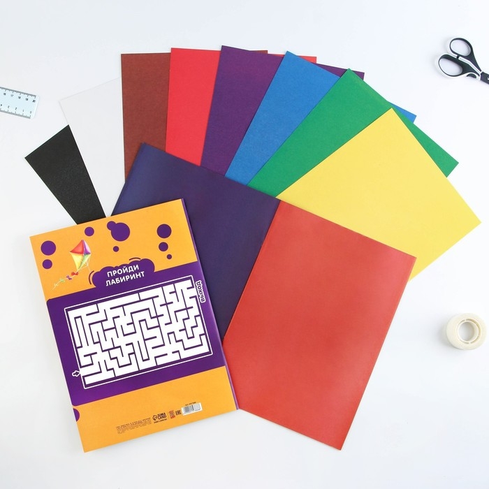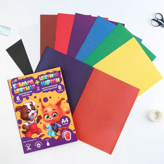 Набор для детского творчества А4, 10 листов картон цветной немелованный + 16 листов бумага цветная двусторонняя