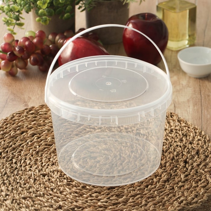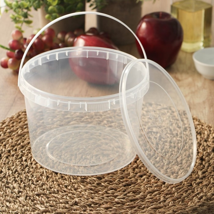 Ведро пластиковое одноразовое с крышкой «Для солений», 2 л, d=17,3 см, прозрачное, 100 шт/уп