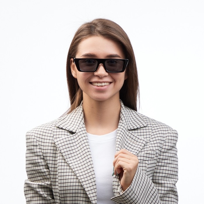Солнцезащитные очки уберегут глаза от вредных ультрафиолетовых лучей, а благодаря стильному минималистичному дизайну станут красивым акцентом в вашем повседневном или деловом образе! Крутой декоративный аксессуар хорошо будет смотреться и с молодежным стилем кэжуал, и со строгой классикой. Они пригодятся вам для создания красивого аутфита на фотосессию, вечеринку и другие мероприятия.