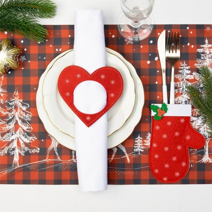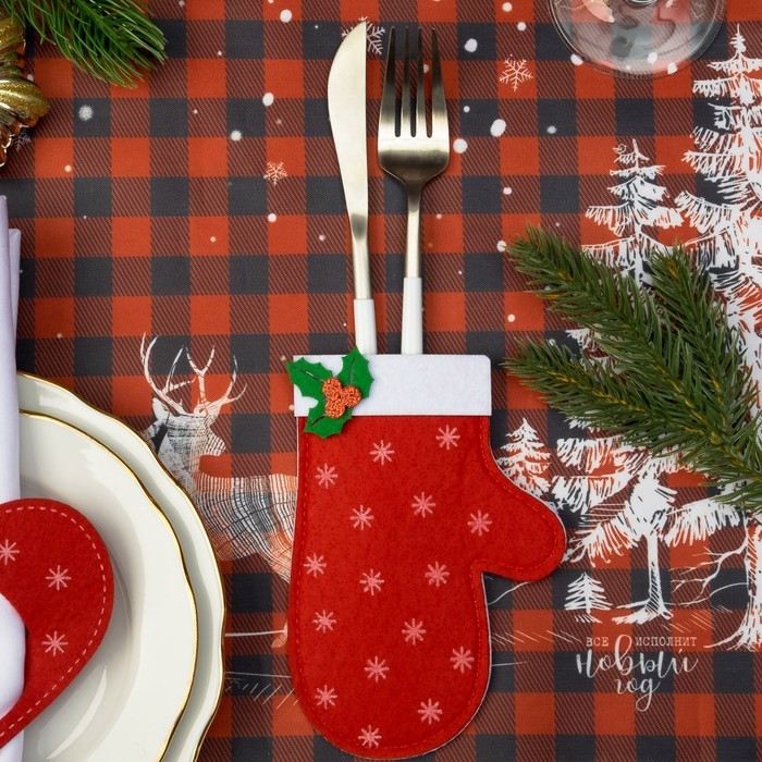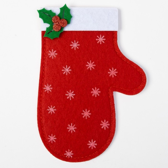 Новый год. Набор конвертов для столовых приборов "Варежка" 4 шт, 10х15 см, 100% п/э, фетр