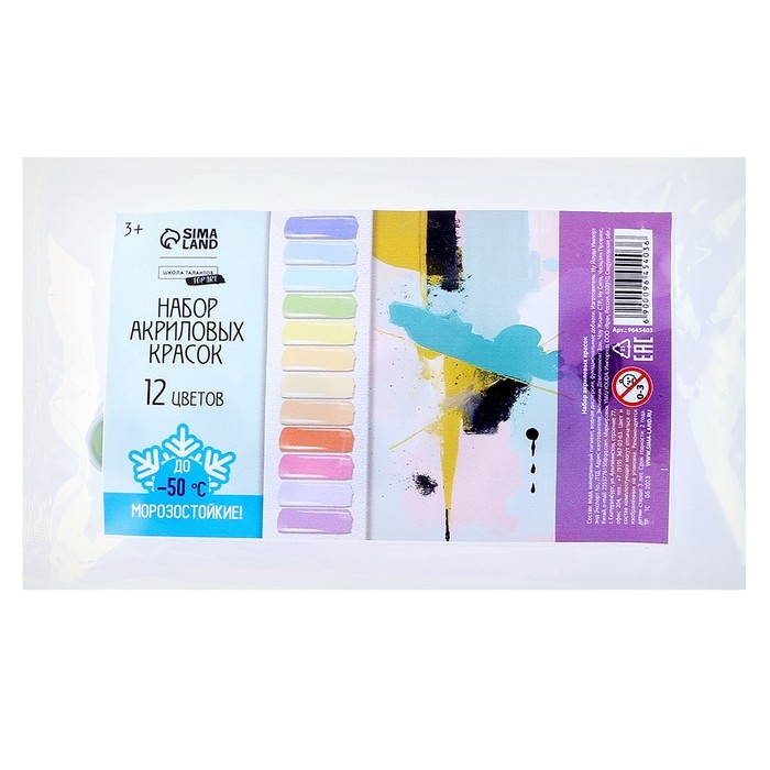 Краска акриловая, набор 12 цветов х 20 мл, Calligrata, художественная, морозостойкая, в картонной коробке
